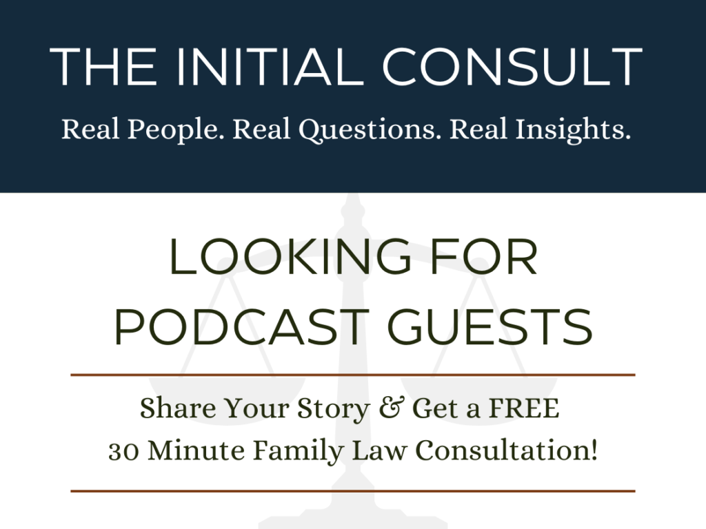 As a guest on “The Initial Consult”, you will receive a FREE 30 minute family law legal consultation with Chester County, PA attorney Julie Potts. In exchange for the free consult, you are opting to waive your rights to confidentiality and are allowing your podcast episode to be edited in any way we determine to be appropriate and publicly shared to anyone around the world who wishes to download the episode.